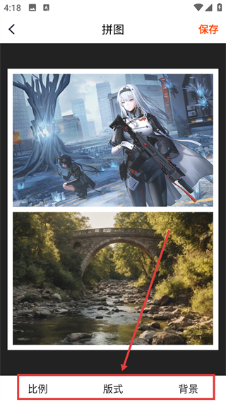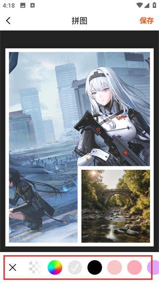 4、调整好拼图版式后,还能点击底部的背景色选项,更换拼图的背景样式,让成品更有特色哦。