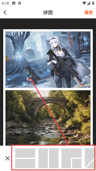 2、进入拼图页面后,点击底部的【版式】选项,就能打开版式选择栏,挑选喜欢的图片排列样式哦。