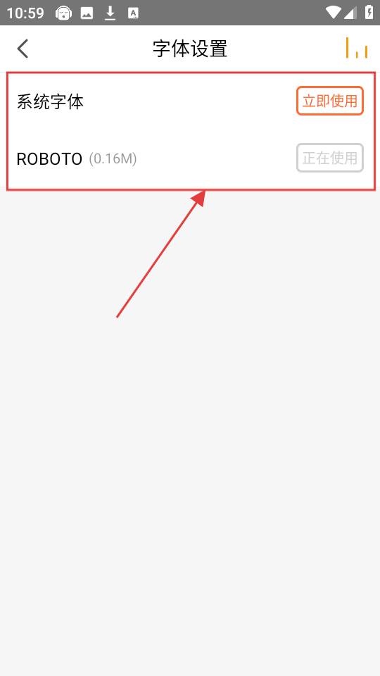 4、到了字体设置页面,能看到系统字体、ROBOTO等字体选项,根据喜好选择并点击【立即使用】,就能更换字体啦。