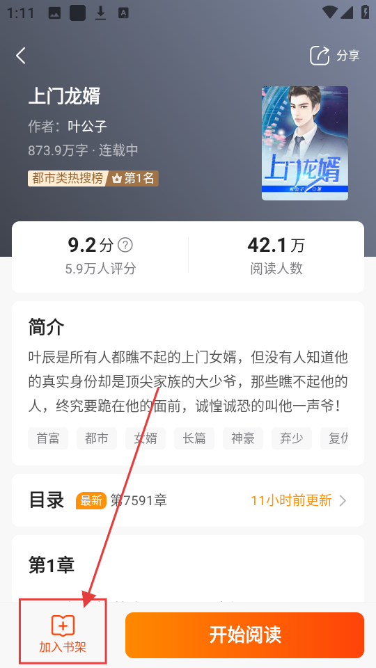2、进入书籍详情页后,点击【加入书架】,可将书籍加入书架哦。