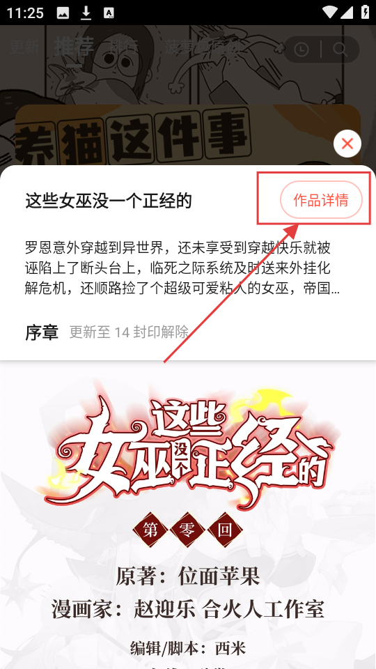 2、进入漫画弹窗后,点击【作品详情】,就能查看漫画的详细介绍,了解更多内容哦。