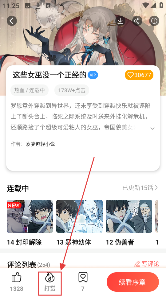 3、在漫画详情页,有【打赏】功能,喜欢漫画就可以打赏作者,支持他们创作更多精彩内容哦。