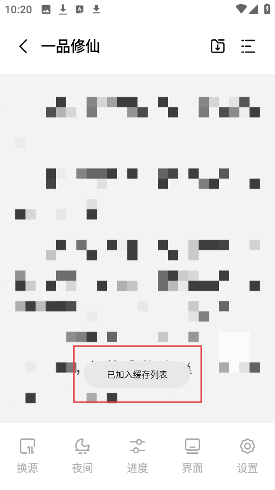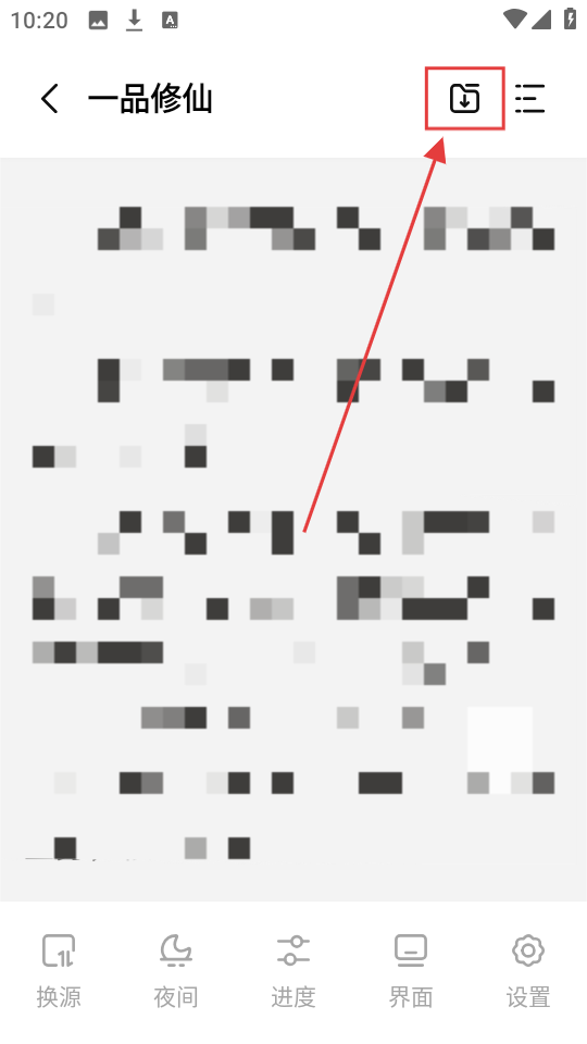 1、在【一品修仙】阅读界面,点击右上角的缓存图标,就能开启章节缓存功能啦,超方便的哦。