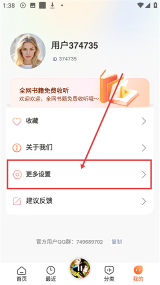 2、进入个人中心后,找到【更多设置】选项并点击,可进入设置详情页面啦。