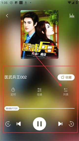 3、在播放界面,点【列表】按钮,能展开播放列表,方便切换不同集数的音频内容呢。