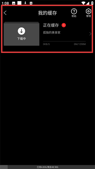4、进入我的缓存页面,可查看《孤独美食家》的下载进度,待下载完成后即可离线观看哦。
