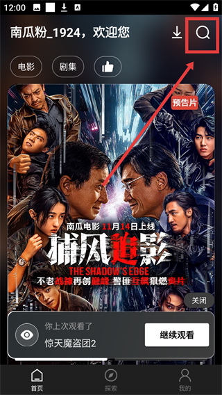 2、南瓜电影免会员版享受高清画质体验,想看的话,可以直接在软件里搜索。这是一个拥有巨大电影资源的播放软件。