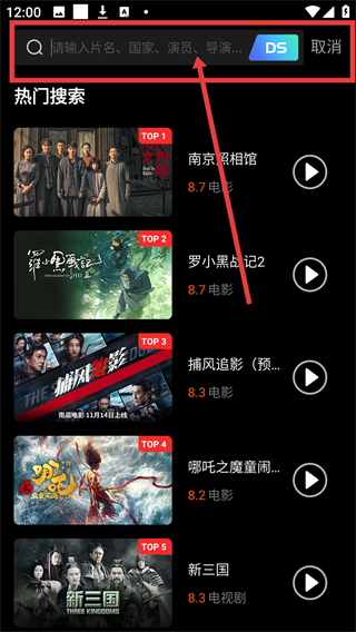2、进入搜索页面后,在搜索框输入片名、演员等信息,可进行影片搜索啦。