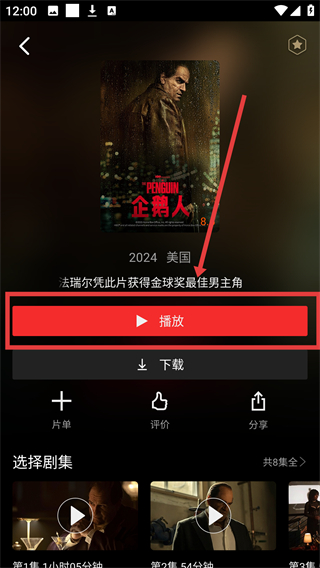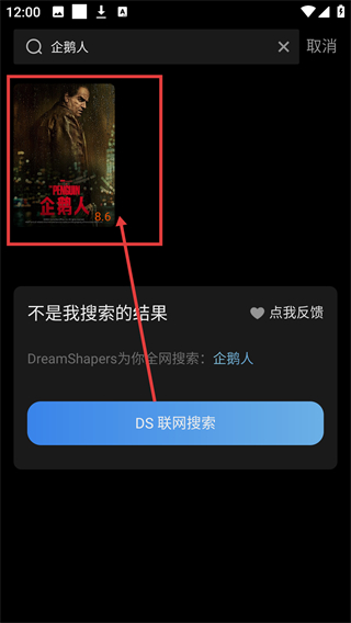 3、搜索后点击想要观看的影片,比如《企鹅人》,可进入影片详情页哦。