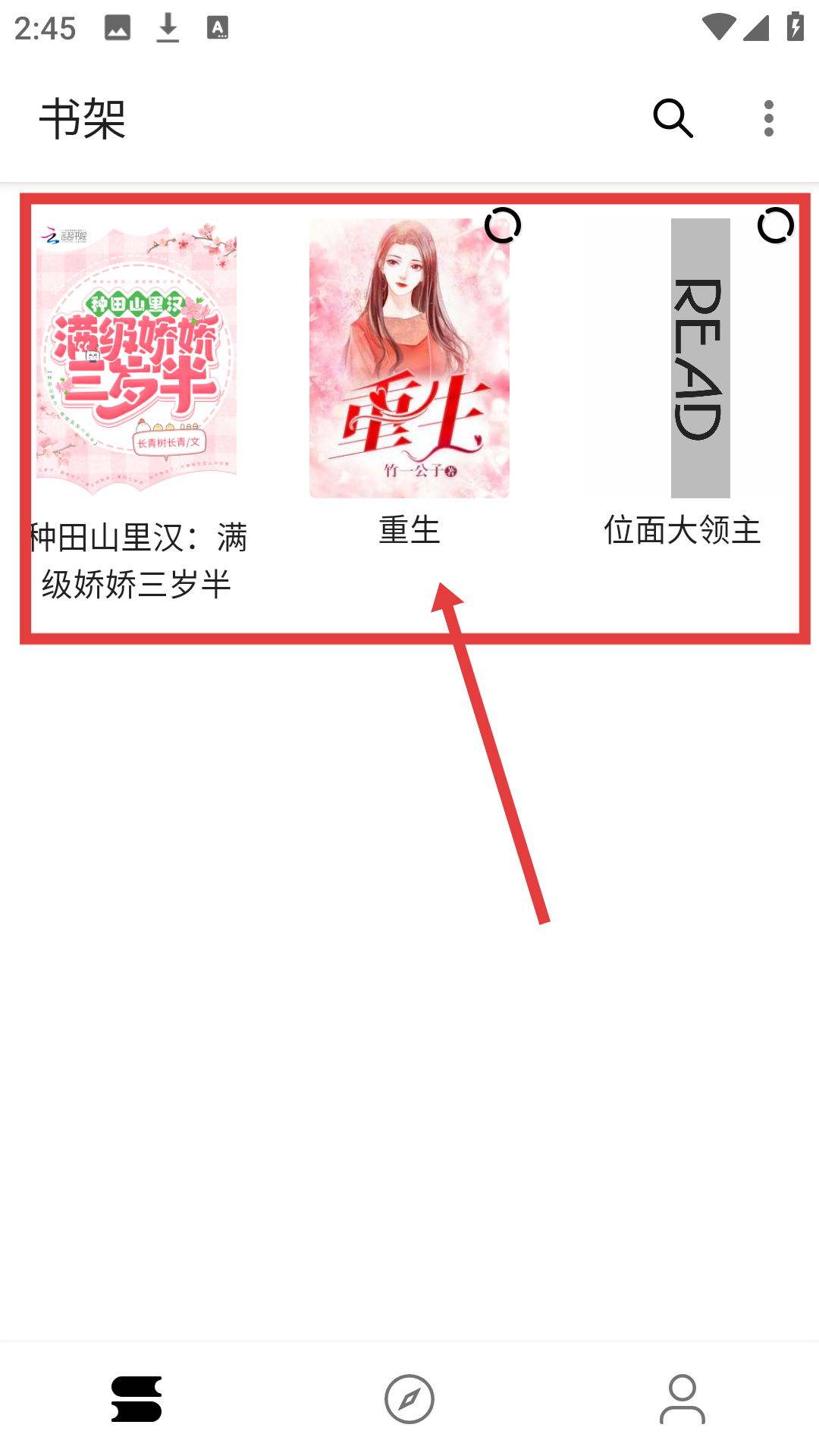 1、在书架页,点要阅读的书籍,可进入书籍阅读页面哦。