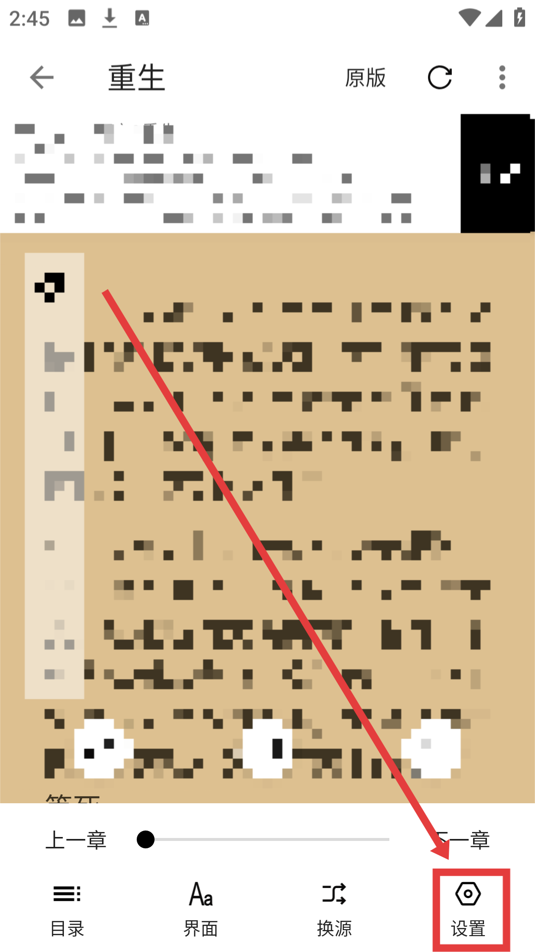 2、在阅读页面,点【设置】,能打开阅读设置选项啦。