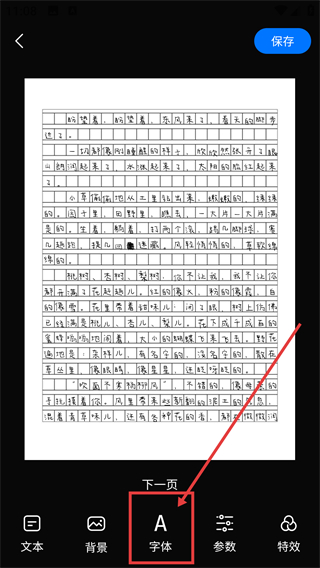 2、进入编辑页面后,点击底部的【字体】选项,就能打开字体设置界面,调整文字的显示样式哦。