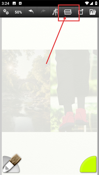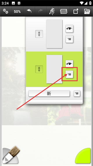 1、在绘画界面点顶部的图层按钮,能打开图层管理面板,后续可对绘画图层进行各类操作啦。