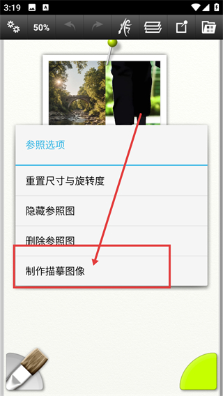 1、在绘画辅助界面点击【制作描摹图像】选项,就能生成可描摹的图像素材,方便后续绘画练习啦。