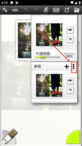 2、生成描摹图像后,点击参照面板的更多按钮,就能打开参照图的设置菜单,调整参照图参数哦。