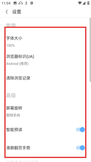 3、进入设置界面后能看到多个选项,比如【字体大小】【清除浏览记录】,可按需调整功能啦。