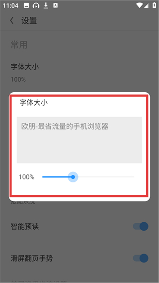 4、点【字体大小】选项会弹出调节窗口,拖动滑块就能调整字体显示比例,让浏览更舒适哦。