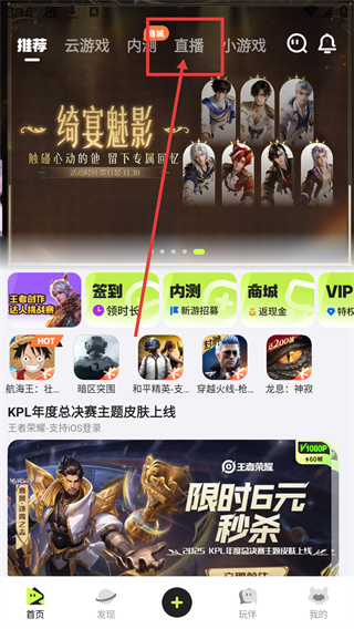 1、点击【直播】,进入直播界面,可观看各类游戏直播哦。