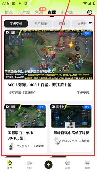 2、点击发现,可查看多游戏视频;