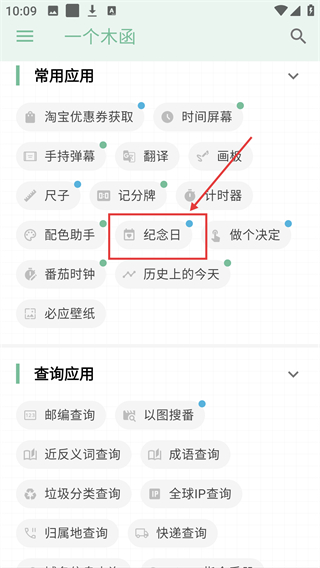 1、在常用应用区域点击【纪念日】,进入纪念日页面可管理各类纪念事项哦。