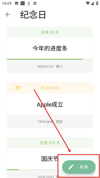 2、进入纪念日页面后,点击【新建】按钮,可开启新增纪念日的流程啦。