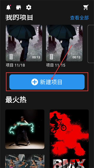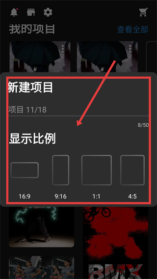 1、在项目界面点击【新建项目】,弹出显示比例选择框,准备创建新的编辑项目哦。