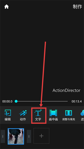 3、在编辑界面点击【文字】功能,可给项目内容添加文字元素,丰富内容表现哦。