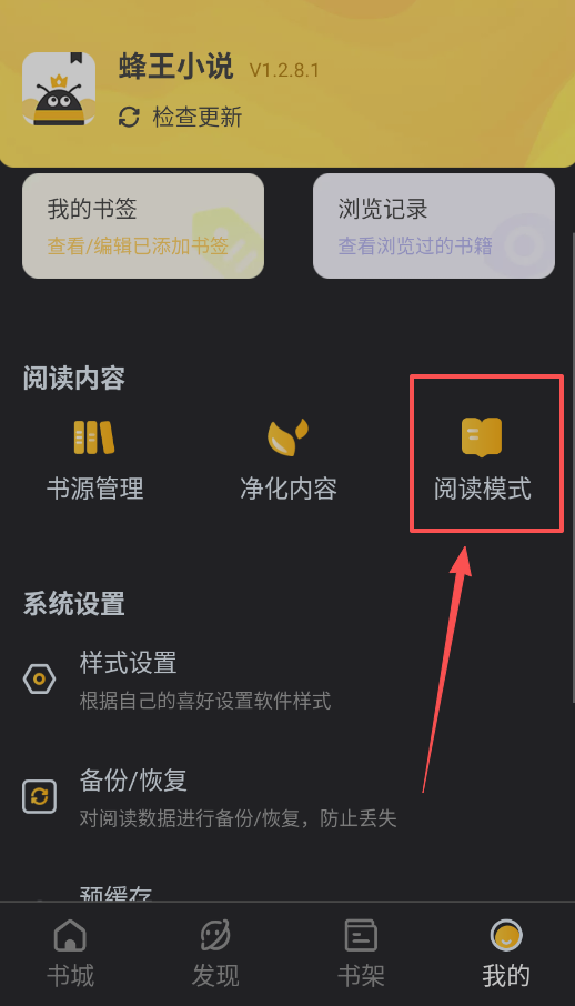 4、个性化阅读可以通过“我的”页面下的“阅读设置”实现,调整背景、字体,或开启“净化”来优化页面,这样看书久了眼睛也不累。