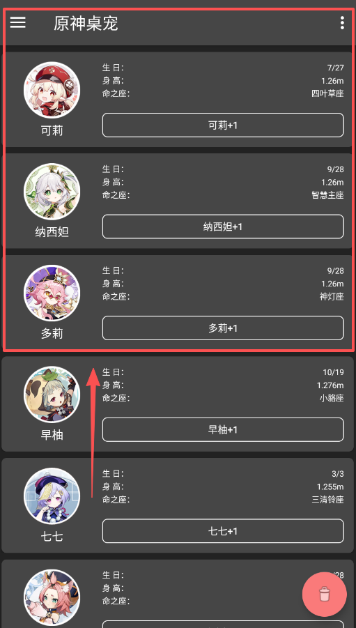 2、然后启动应用,你会来到一个角色画廊,参考第二张图的信息,这里有很多设计好的角色,比如“三清铃座”,各有特色。