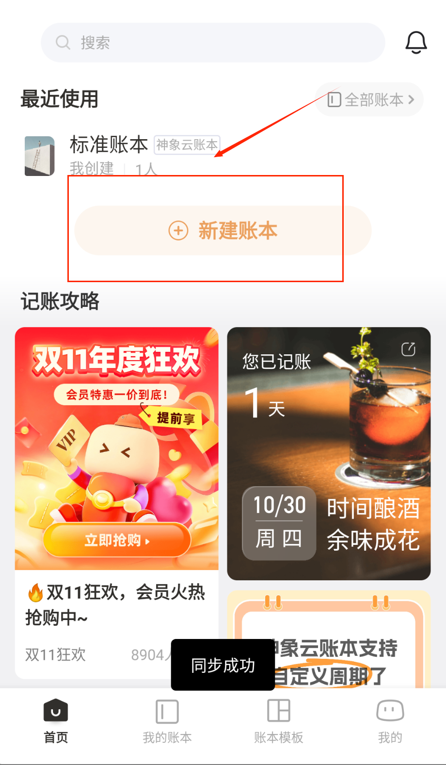 2、想要管理账本的话可以进入"我的账本"页面,这里能看到已创建的标准账本和神象云账本等,点击新建账本按钮可以创建新账本。