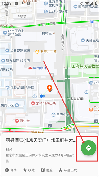 4、选中心仪地点后,点导航按钮,就能开启到该地点的导航路线,轻松前往目的地啦。