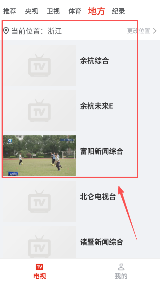 3、软件支持地理位置切换,进入地方分类更改你所在的地区,就能实时收看到余杭综合、诸暨新闻综合这类本地新闻了。