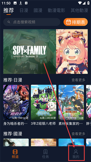 1、在本站下载后,用户打开囧次元app,进入首页,在首页可查看最新番剧,点击我的;