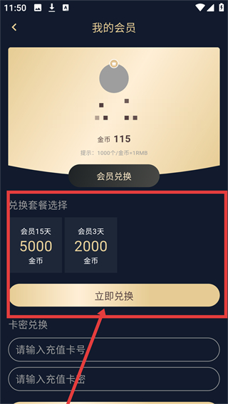 3、在我的会员页面,选择会员兑换套餐,点击【立即兑换】,可发起会员兑换操作啦。
