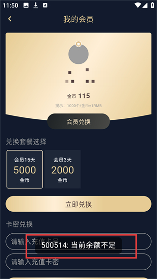 4、若金币余额不足,兑换时会提示当前余额不足,需先获取足够金币再进行兑换哦。