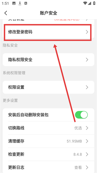 3、在账号设置页面点击【修改登录密码】,可进入密码修改流程哦。