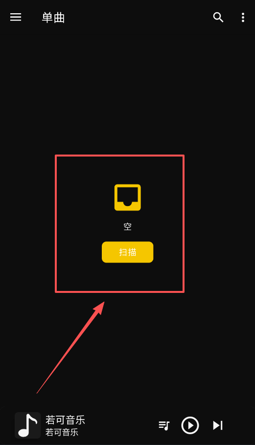 2、如果需要导入本地音乐,可以点击扫描功能,软件会自动搜索设备上的音频文件并添加到资料库,这样你就无需手动一个个添加歌曲了。