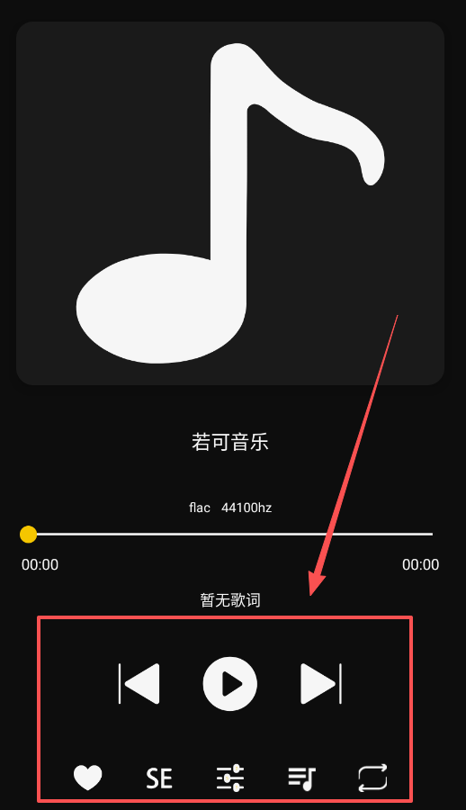 3、播放界面会显示歌曲格式如flac 44100hz,以及播放时间进度,暂无歌词时会提示,你可以通过进度条控制播放位置,操作简单直观。