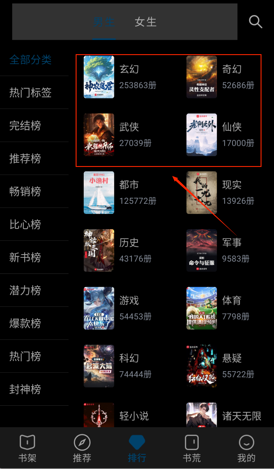 2、近百种分类、上千种标签、权威小说榜,想要看什么小说,很容易就能够寻找你。