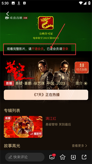 2、进入影片播放页后,若提示需开通会员,可按指引进入会员开通页面,解锁完整观看权限哦。