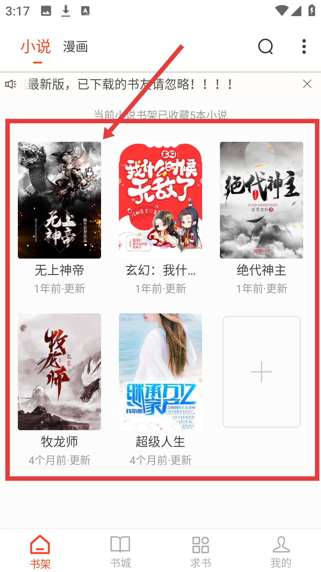 1、在书架页面,选择《无上神帝》等小说,点击进入阅读流程,准备设置翻页方式啦。