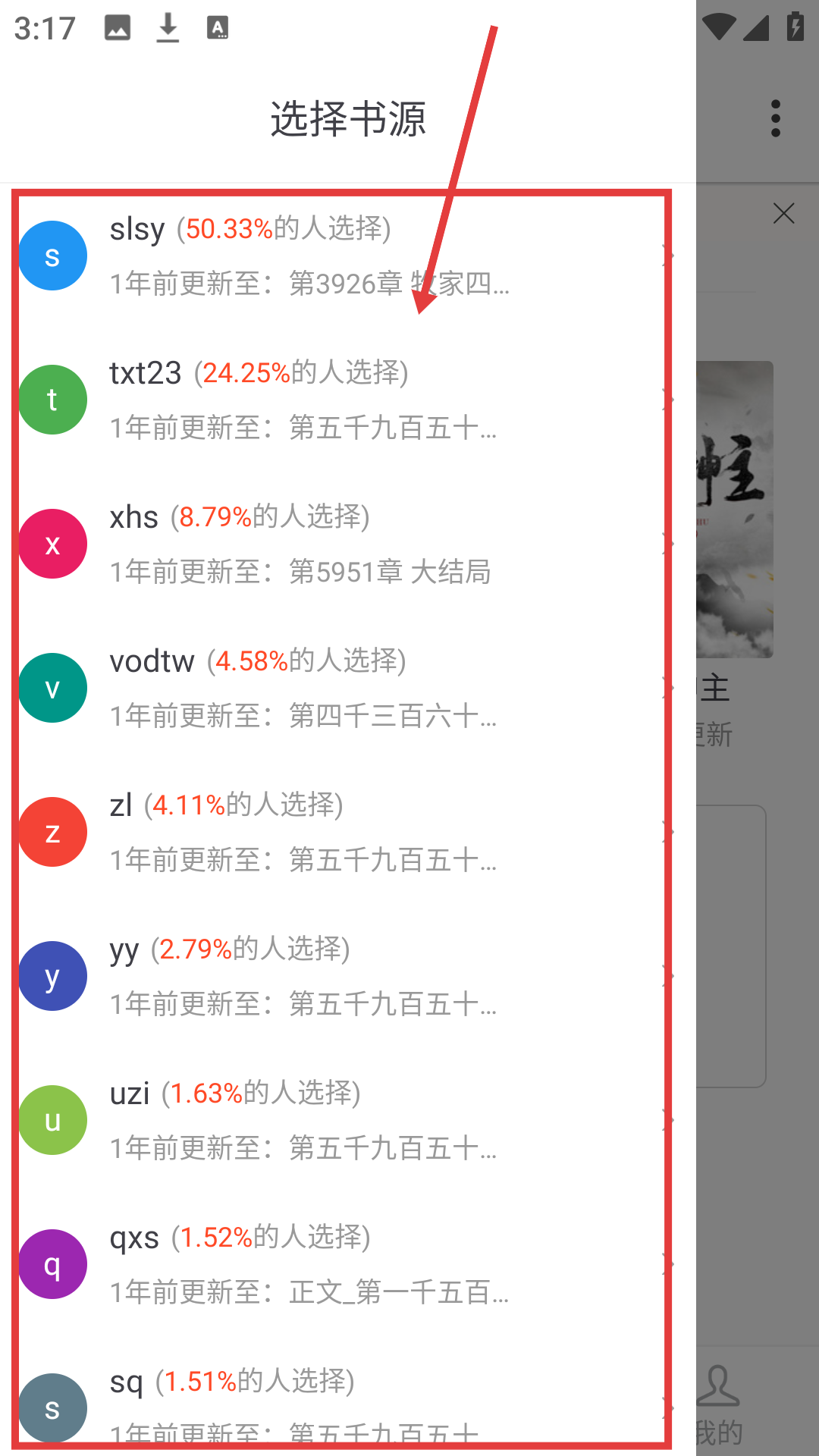 2、进入阅读前,选择合适的书源,如slsy等,可确保阅读内容的稳定获取哦。