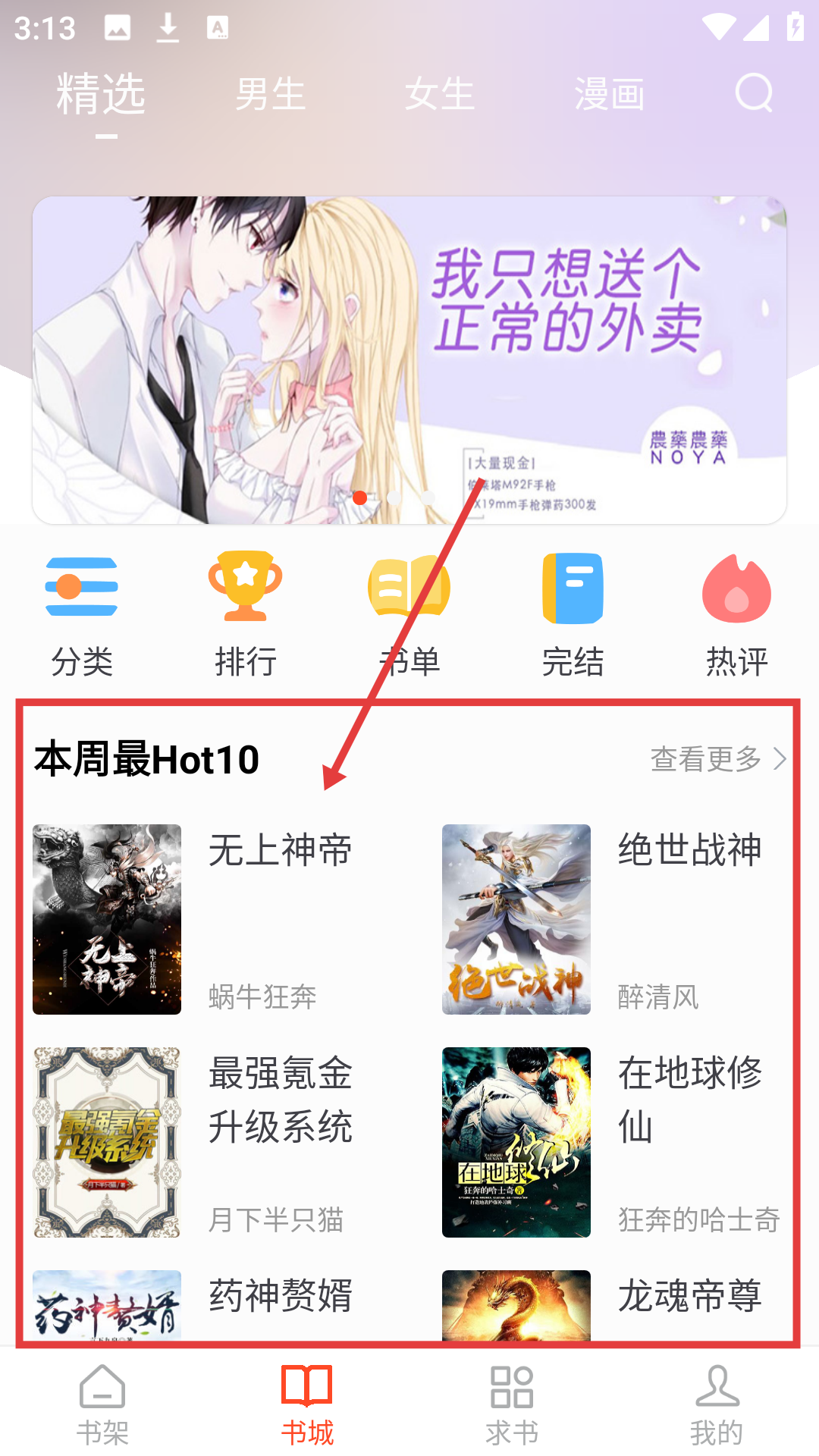 1、在书城页,点感兴趣的书籍,可进入书籍详情页哦。