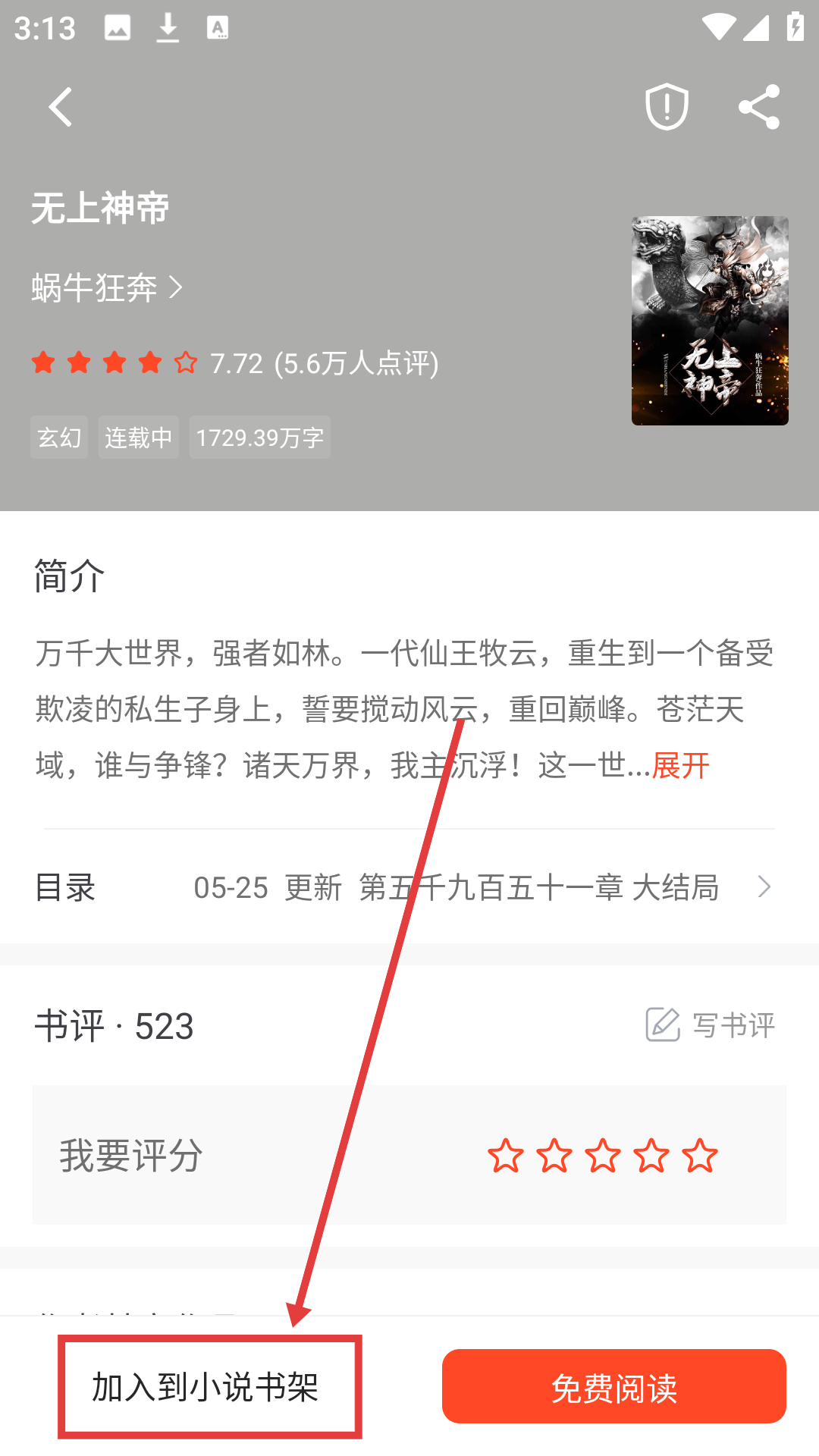 2、在书籍详情页,点【加入到小说书架】,可将书籍加入书架啦。