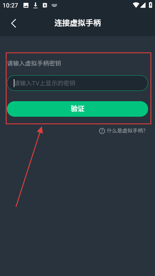 4、在连接虚拟手柄页面,输入TV上显示的密钥,点击【验证】,即可完成虚拟手柄的连接啦。