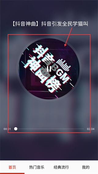 2、点击榜单后会展开曲目列表,选择其中一条【抖音神曲】条目,就能进入该曲目的播放页面哦。