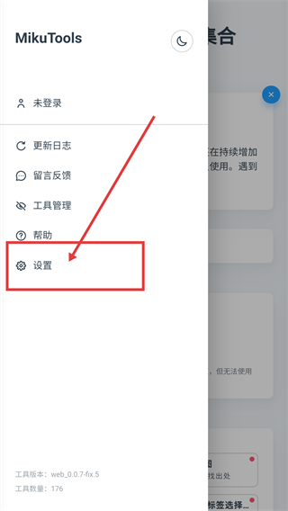 2、展开侧边栏后点击【设置】选项,就能进入设置页面,调整工具的个性化配置哦。