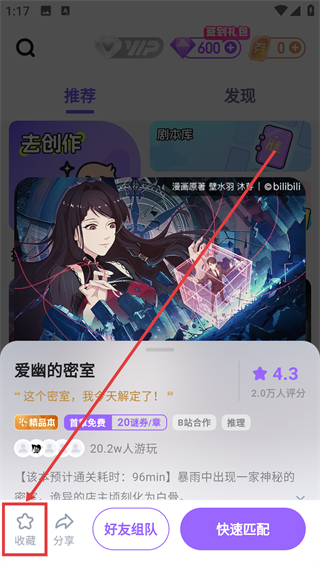 2、进入剧本详情页后点击左下角【收藏】按钮,就能把该剧本加入收藏夹,方便之后快速找到它哦。