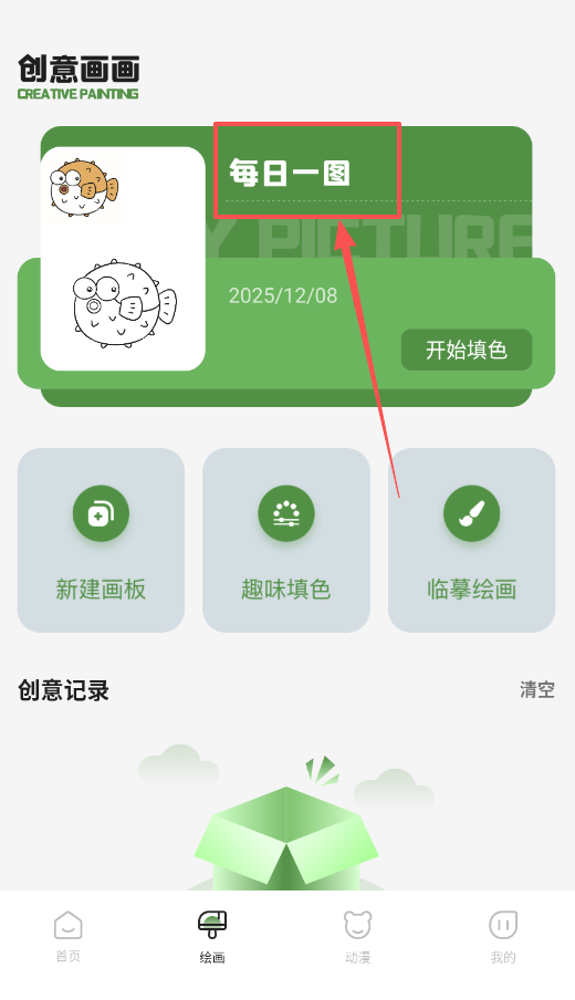 1、核心创作入口在首页:“每日一图”是限时挑战,“新建画板”是自由舞台,“临摹绘画”则适合练基本功。根据你的心情选择就好。