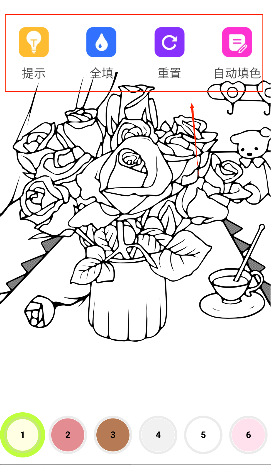 2、填色时按照数字对应颜色区域依次填充,注意边界不要涂出范围,可以放大画面精细操作,复杂图案可以分多次完成。